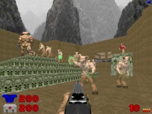From there, you venture into a facility with a standard couple of locked doors and a shit ton of high level monsters. Mostly, this section is fairly reminiscent of the vanilla games first level. You can go outside and fight an army of Cyberdemons, but I’m not sure you’d survive (On a side note, the gunman changed the sounds for this baddie group. It’s really unnerving).
